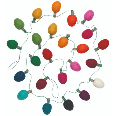 Trim the tree or deck the halls with this handcrafted Spirits Bright felt garland. Strands of Christmas bulbs wrap the home with color, charm, and holiday cheer.