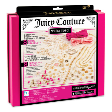 • This bracelet kit has everything your child needs to create 8 unique and bold bracelets. Includes Juicy Couture charms, beads, faux suede cord, chains, instructions and more