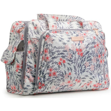 Eastern winds gently sway the cherry blossom trees. Twirling. Swirling. Petals floating with the breeze. This hand painted beauty balances greys with pale blush blooms on a cloud of white. As with all clouds, this print has a silver lining too. JuJuBe's new custom Rose Gold hardware harmonizes sweetly with their Sakura Swirl print. Zen achieved.