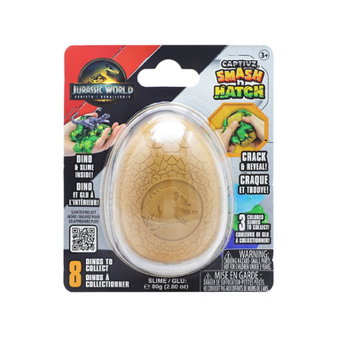 Crack open your Jurassic World Smash N Hatch Egg into pieces and dive into gooey, colourful slime to uncover one of eight epic Pop ёN Lock dinosaurs from the blockbuster movie Jurassic World: Rebirth. But if you think the adventure stops thereҗthink again! Break the eggshell into the slime and create a textured goo you can stretch, pull, squeeze, and crunch in your hands for hours of calming sensory play and satisfying, stress-relieving fun. Will you find a savage, battle-ready land predator, a fierce flying pterosaur, or a terrifying sea creature, each encased in slime inspired by their environment? Or maybe youll uncover one of the two ultra-rare, electroplated dinosaurs in their own uniquely coloured slime? The hunt is on! Start collecting now to uncover the epic dinosaurs waiting inside. Each pack contains: 1 x Smash N Hatch Egg Contains slime and CAPTIVZ Pop N Lock Dinosaur inside 3+