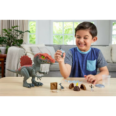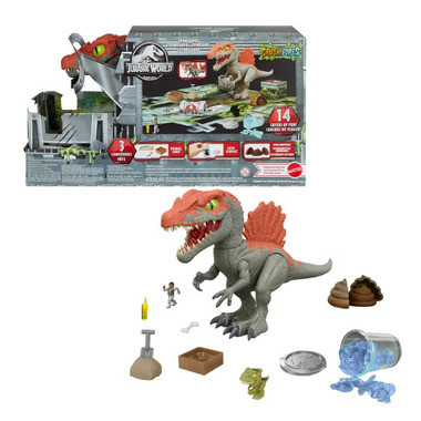 The Spinosaurus Cage Crasher is much more than a dinosaur figure -- it's an immersive unboxing exploration with sensory dino play and storytelling! Dinosaur lovers can relive the thrills and adventures of the Jurassic World franchise while they unveil multiple levels of reveals and surprises within the pack. In addition to the spectacular 12,9-inch long Spinosaurus, there's a Cryo Sludge encapsulated mini dinosaur, Fossil Sand, Dough Droppings and much more! Makes a great gift for fans of Jurassic World and dinosaur play 4 years and older.