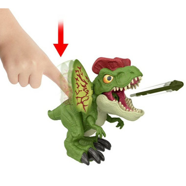 - Authentic look! With its distinctive colorful frill and head crest, the Dilophosaurus from Jurassic Park is unmistakable. This edition of the fan-favorite species with its special spitting action adds flair to any dinosaur collection.