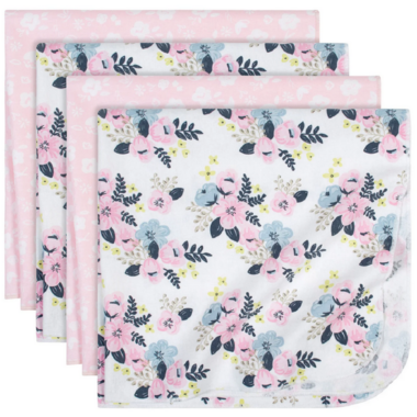 The Just Born Floral Blankets provide versatility for your baby's busy life. Pack of soft coordinated blankets each feature a blossoming floral print, crafted of cozy cotton flannel for soft comfort and warm snuggles.