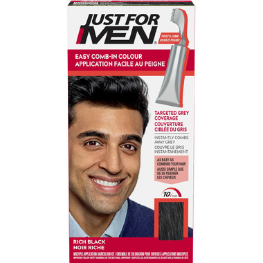 Just For Men's patented no-mix formula and specially designed comb applicator make it easy to target grey areas or simply comb throughout your hair, for natural-looking results.