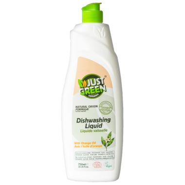 Just Green Organic Dishwashing Liquid is tough on grease, gentle on waterways, and leaves your dishes sparkling clean. Its biodegradable formula made with natural ingredients and free of additives and chemicals, is gentle on skin and washes clean without any toxic residue on your dishes.