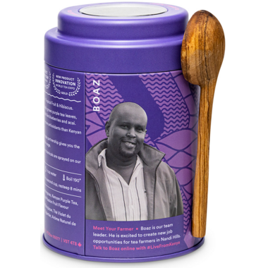 100% Natural Ingredients: Organic Lemongrass, Kenyan Purple Tea, Hibiscus, Apple Pieces, Rosehips, Natural Passion Fruit Flavour.