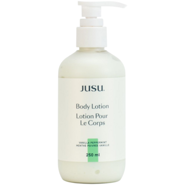 Created with Japanese peppermint, this all natural vegan body lotion is formulated with Aloe Leaf Juice and Coconut Oil to soothe and energize. Vanilla is a natural antioxidant, aphrodisiac and relaxant that leaves you feeling soothed. Protect your skin from environmental stressors and hydrate your body with this sweetly refreshing combination. Easily absorbed and non-greasy, this rich all natural body lotion nourishes all skin types. Jusu's all natural body lotion can be used as a hand cream and full body moisturizer.