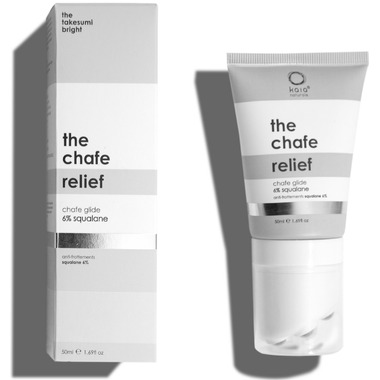 For anyone prone to chafing. The Chafe Relief formulated with 6% Squalane, creates a protective barrier on the skin to help instantly soothe chafing irritation caused by heat and friction. Squalane mimics the skins natural oils, providing lasting moisture without an oily feel. With just a pea-sized amount, this concentrated balm glides on smoothly and dries down to a matte, powder-like finish. The 5-over-5 stainless steel applicator delivers precise application and a cooling effect to help calm redness.