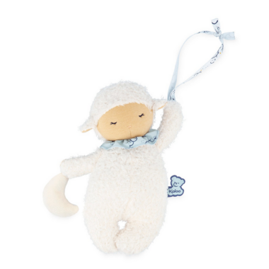 Discover the Doux Sommeil range, created around the theme of babys sleep, which is a key concern for parents. The products are designed for bedtime to soothe baby from the very first moments and help establish a bedtime routine as they grow. Music plays an important role in the falling-asleep process as it helps calm baby. This is why the 20 cm nomadic sheep plush plays the gentle "Hush Little Baby" lullaby when you pull the pom-pom on its back. Thanks to its small size and ribbon, it can be carried and hung anywhere to help baby fall asleep peacefully.