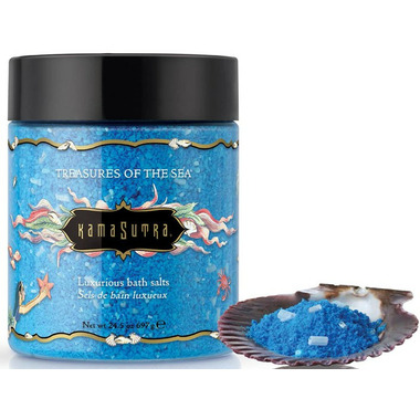 Kama Sutra's famous luxury bath salts transform an ordinary bath into a sensual oasis of tropical, blue water. Made with skin-nourishing sea minerals and includes a real seashell scoop. Let the scent of soft, ocean breezes lull you into a state of deep relaxation.