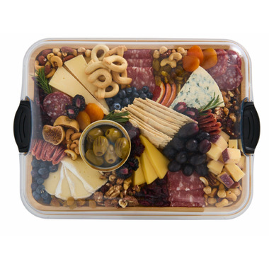 Elevate your hosting game with the Kamenstein "Build a Board" acacia set. Craft stunning charcuterie arrangements, allowing you to arrange cheeses, fruits, nuts, or meats for an exquisite touch. The practical locking plastic storage lid provides food freshness and security, making transporting your charcuterie board effortless.