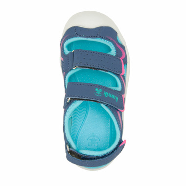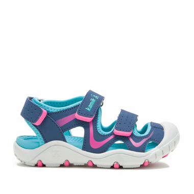 Kamik Wander kids' sandals have a stylish vegan-friendly synthetic leather upper and feature three adjustable straps. With their synthetic rubber outsole and toe guard, these practical sandals are great for kids who like to let their spirit wander, without always watching where they're going.