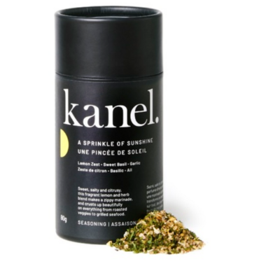 Kanel Spices A Sprinkle of Sunshine made with Lemon Zest, Sweet Basil and Garlic. Sweet, salty and citrusy, this fragrant lemon and herb blend makes zippy marinade, and crusts up beautifully on everything from roasted veggies to grilled seafood.