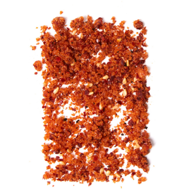 Ingredients: Brown Sugar, Sea Salt, Garlic, Sesame Seeds, Spices, Gochugaru, Sunflower Oil. Contains: Sesame Seeds