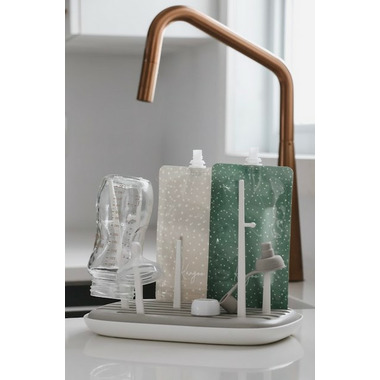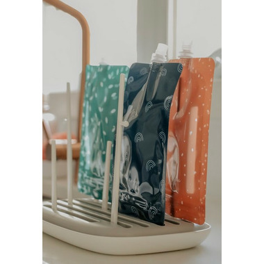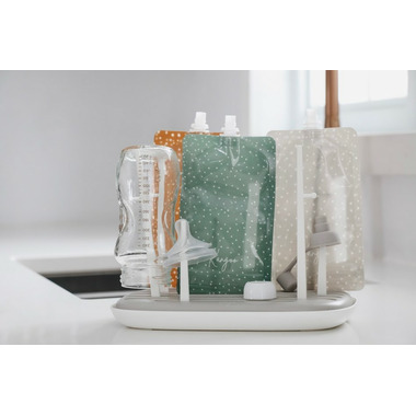 The nice grey BPA-free drainer is ideal for drying reusable food pouches, baby bottles, bottle nipples, bottles and other accessories.