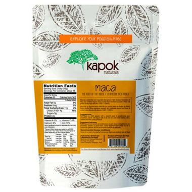 Maca is a radish-like root vegetable that grows in the Andean mountains of Peru. Kapok Maca comes from the finest sources in Peru and grown at very high altitudes (7,000 - 11,000 ft.).