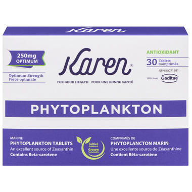 Karen® is 100% pure, natural phytoplankton. It is an excellent source of Zeaxanthin, an antioxidant and contains Beta-Carotene. Tap into this ancient nutrition, the power of the ocean. A convenient and economical way to take your Karen Phytoplankton. Also a perfect option for people who are not a fan of the taste of the pure powder.