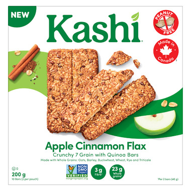 Kashi Apple Cinnamon Flax Crunchy 7 Grain with Quinoa bars are sure to be your familys go-to snack. Hints of warm cinnamon meet the taste of sweet apple in a light, crunchy texture that's easy to love.