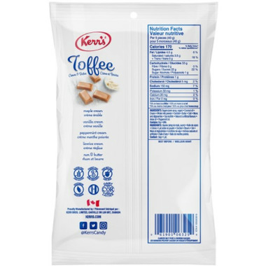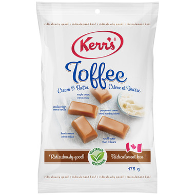 Kerr's Toffee made from fresh cream and butter. Flavors included: Vanilla Cream, Maple Cream, Rum&Butter, Licorice Cream, Peppermint Cream