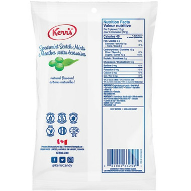 Kerr's Spearmint Scotch Mints made with natural spearmint oil.
