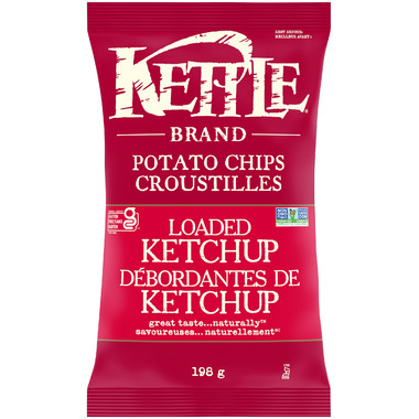 Kettle Brand Potato Chips Loaded Ketchup great taste naturally.