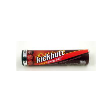 Kickbutt Amped Energy Ballz are cherry flavored energy packed into 1" ballz. They provide a powerful functional food for extreme energy - the most effective energy enhancing production in the market in the most unique delivery system. Comprised of high-quality protein, carbs, vitamins, herbs, minerals and caffeine, kickbutt ballz deliver immediate and sustained energy while also providing great taste and nutrition. Contains:
