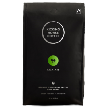 Kick Ass, Sweet, and Audacious. Something worth doing is worth dreaming big. This blend is the spirit of Kicking Horse Coffee, and their bold invitation to wake up and kick ass with us. All certified fair trade and organic arabica beans,