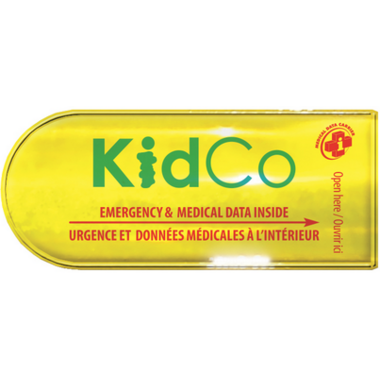The KidCo® Child’s Medical Data Carrier® allows critical medical information to be available to first responders in case of an accident. In case of emergency, lifesaving information about the child is easily identifiable on this reflective sign.