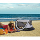The newly designed PeaPod Plus is here!  This convenient travel bed offers peace of mind to parents trekking with kids.  A lightweight mesh surround provides increased air flow while a large front zipper panel makes access to your child effortless.  The Micro-Lite sleeping pad comes firmly secured to the outer bottom of the PeaPod Plus with snaps, but is easily removable for cleaning or packing.   The PeaPod Plus also has great features for outdoor use including UV protection, anchor straps, adjustable sun screens, and an inner mesh zipper panel perfect for keeping insects out!  This handy bed also quickly folds for storage inside its own bag and fits into your luggage, making it perfect for short visits or long trips.