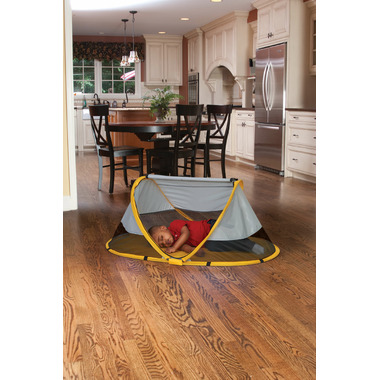 The newly designed PeaPod by KidCo is here! This convenient travel bed offers peace of mind to parents trekking with kids. A lightweight mesh surround provides increased air flow while a large front zipper panel makes access to your child effortless. The Micro-Lite sleeping pad comes firmly secured to the outer bottom of the PeaPod with snaps, but is easily removable for cleaning or packing. The PeaPod also has great features for outdoor use including UV protection and anchor straps. Believe it or not, this handy bed fits inside carry-on size luggage, making it great for trips without having to check bags! When not in use, the PeaPod quickly folds for storage inside its own bag making it perfect for short visits or long trips.