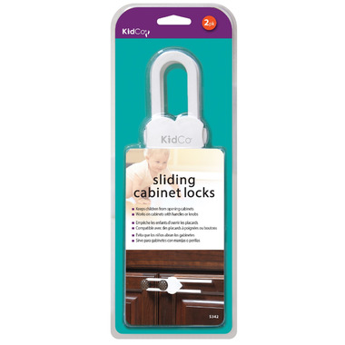 A simple solution to keeping little ones out of cabinets. The KidCo Sliding Cabinet & Drawer Locks attach easily and fit snuggly around cabinet knobs or handles; no screws or adhesive mount necessary. Fits handles or knobs that are 2” – 7” apart.