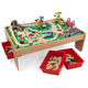- Composite wood table and accessories, solid wood train track, and plastic accessories