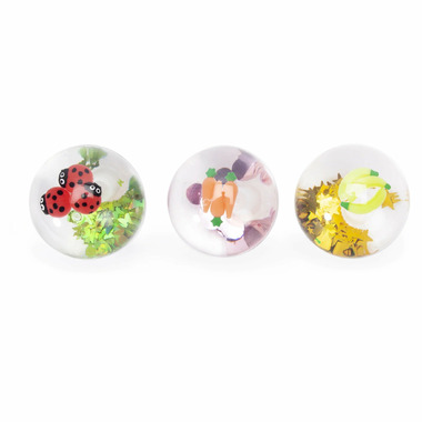 This fun bouncy ball is filled with liquid, glitter and something the monkey is after! How high can you bounce it?