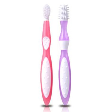 We like these as first toothbrushes for baby. The head on the one is quite small but does the job in the beginning. My baby loves the more nubby one to chew on and “brush” her own teeth while I brush mine.