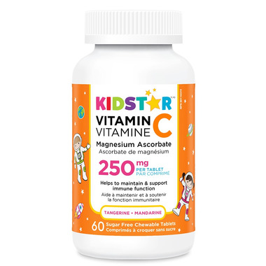 A tasty, tangerine-flavoured Vitamin C tablet for kids ages 3+ and adults. Contains 250mg of Vitamin C from magnesium ascorbate per tablet for optimal absorption.