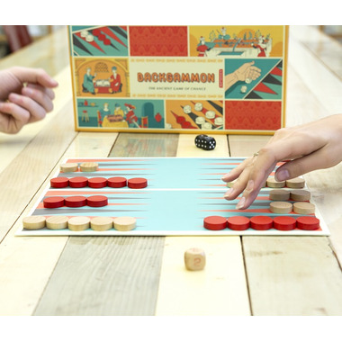 Kikkerland Backgammon Set - This two player board game dates back to 3000 BC and has remained popular throughout history. Players rely on both strategy and luck to help them win. The object of the game is to move your pieces along the board's triangles and off the board before your opponent does.