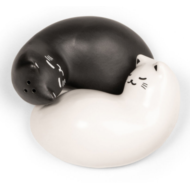 Nestled in purrfect harmony, these salt and pepper shakers add a touch of whimsy to any space.