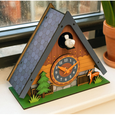 This whimsical cuckoo clock will keep you running on time. You decide when the cuckoo bird chimes! Requires 3 AA batteries. Size: 8.75 x 7.25 x 3.59 inches