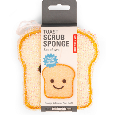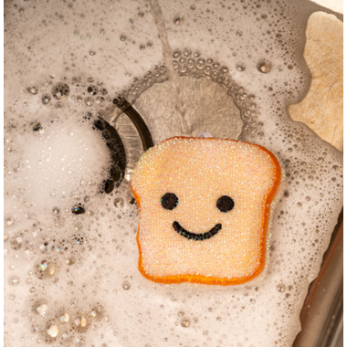 Add some fun to your kitchen with these smiley toast dish scrubbers, perfect for cleaning dishes and surfaces. Set of 2. Size: 4 x 4 x 0.75