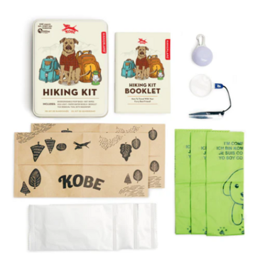 Includes: 3 biodegradable poop bags, 3 wet wipes, 2 paper water bowls, dog light, tick removal tool with magnifier and dog traveling guide booklet.