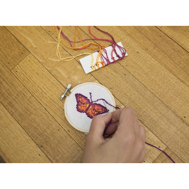 I bought this as a fun way to pass the time. It's a great little kit that comes with everything you need to make a little cross stitch piece about the size of your palm. I did one color a day as a nice way to relax in the afternoons. My only qualm is the oranges are very very similar and it's hard to tell them apart on the pattern.