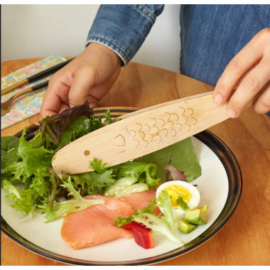 All natural bamboo fish tongs, perfect for any kitchen/serving collection. Made of 100% Bamboo. Dishwasher Safe.