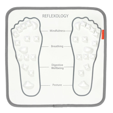 This easy to use foot mat is a simple, at home way to practice reflexology. By applying pressure to the coordinating pressure points on your feet, you can target specific systems of the body. Reflexology is great for alleviating stress and promoting overall well-being. This portable mat features firm massage points that focus on improving: mindfulness, breathing, digestive well-being and posture.