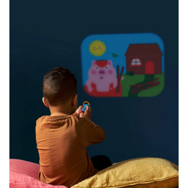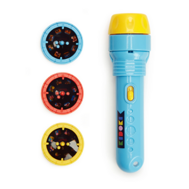 Storybook Flashlight with 3 different stories that you project on wall. Includes 3 story reels inside - Three Little Pigs, Little Red Riding Hood, and The Three Bears.