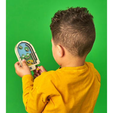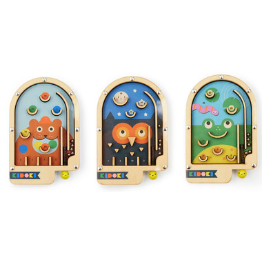 Handheld wooden animal themed pinball games. Assorted: Owl, Bear, or Frog.