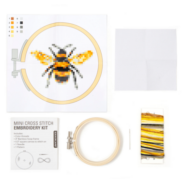 Kikkerland Mini Cross Stitch Embroidery Kit Bee