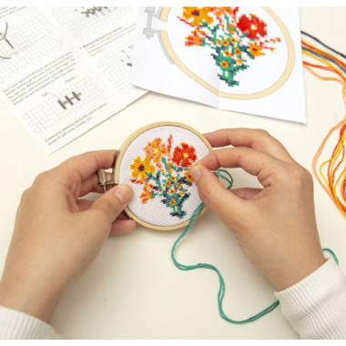 Relax at home or at work with a mini-embroidery kit. Also, a great kit for beginners! Happy stitching!