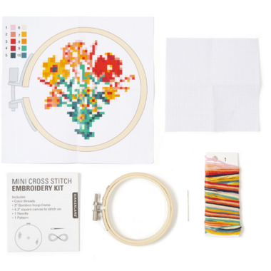 Kikkerland Mini Crosstitch Embroidery Kit Flowers