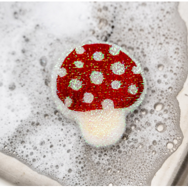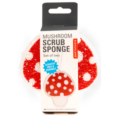 No fungus here, only these fun guys! Set of 2 mushroom shaped scrubbing sponges. These scrubbers are safe for all dinnerware & cookware surfaces but are also tough scrubbers! Features a nylon string to hang it up when you're done with the dishes.