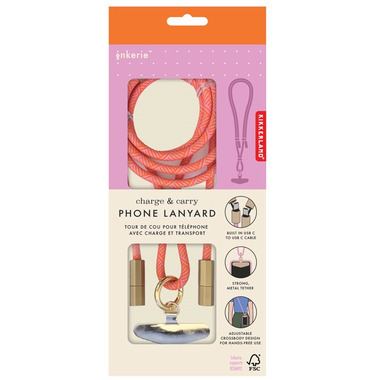 Adjustable hands-free phone holder doubles as a charging cord! Wear it around your neck or shoulder while on the go. Type C to Type C charging cord.